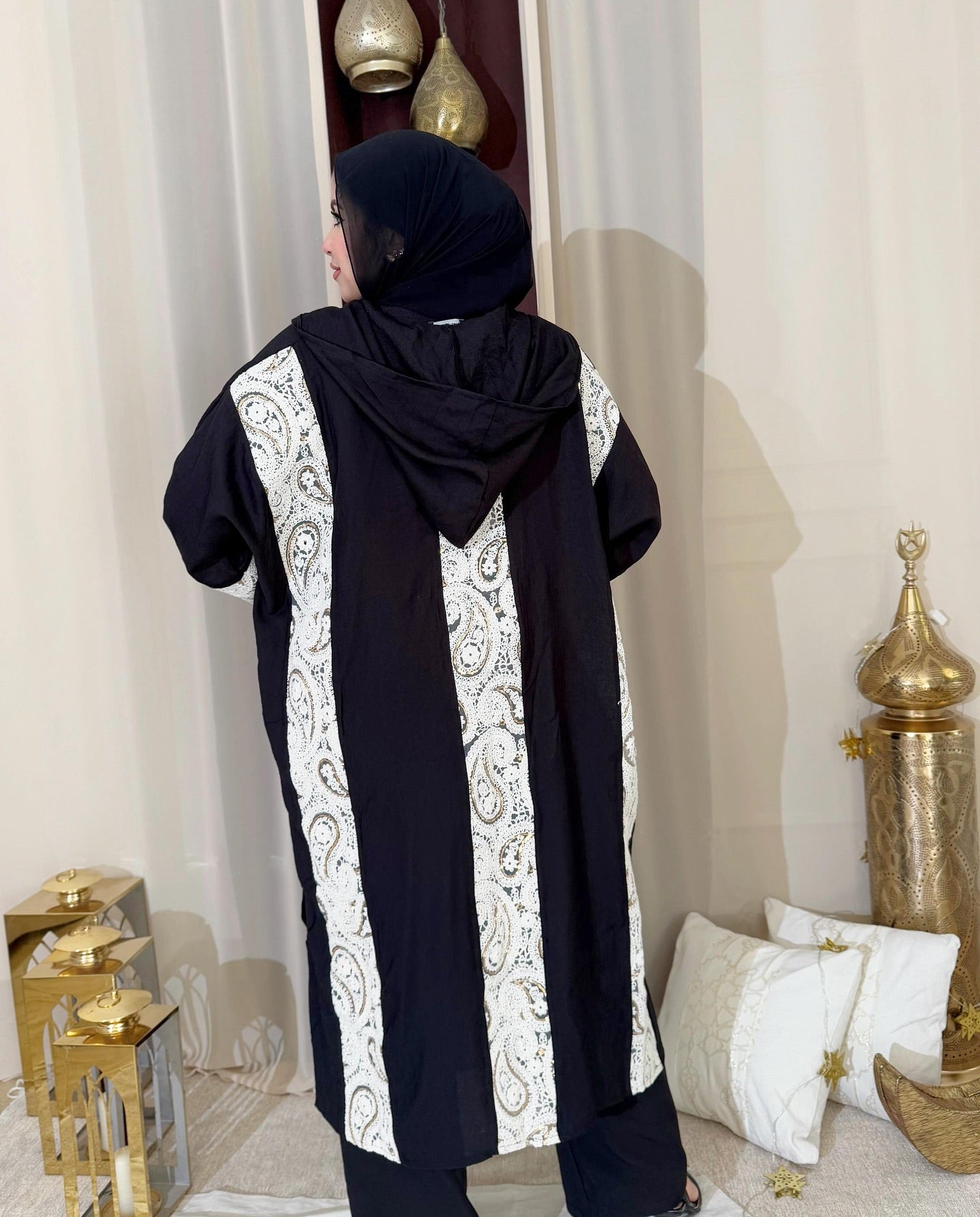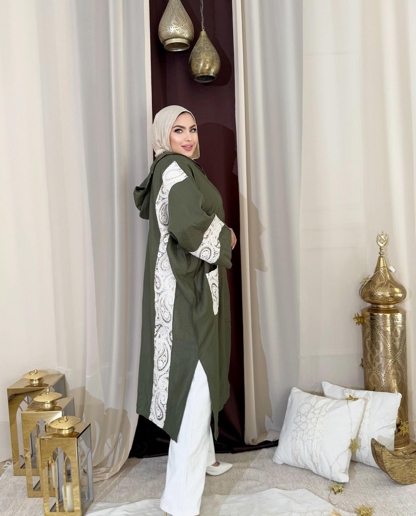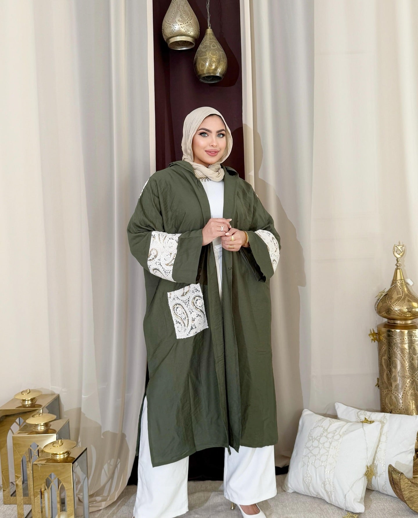 اكتشفي أناقة لا تزول مع هذا الكارديجان الراقي المصنوع من خامات ناعمة تجمع بين الراحة والفخامة. يتميز بقصّة واسعة تمنحك حرية الحركة ولمسة عصرية، بينما تضيف التطريزات الدقيقة على الأكمام والجيوب لمسة ساحرة تعكس الذوق الرفيع.